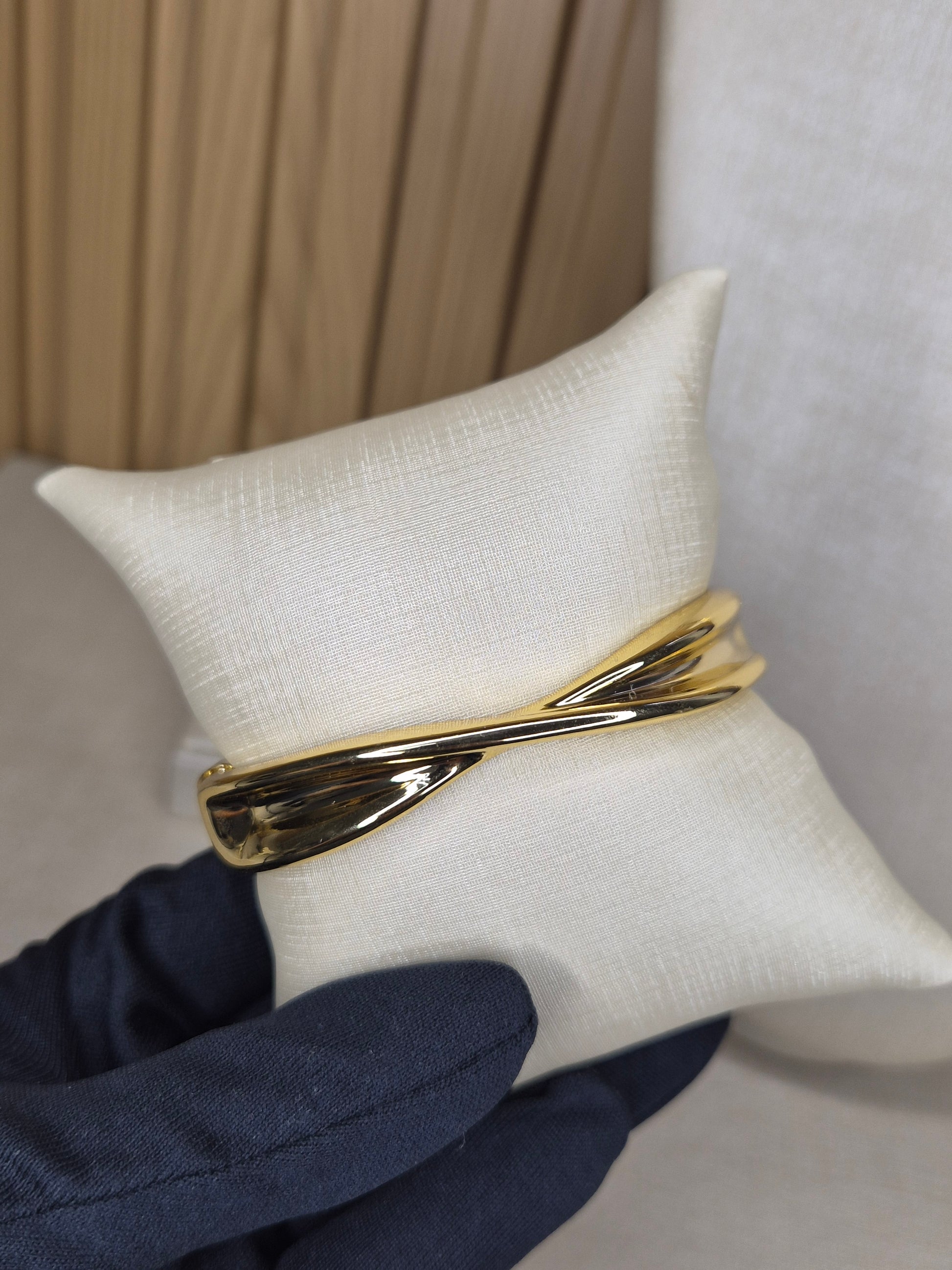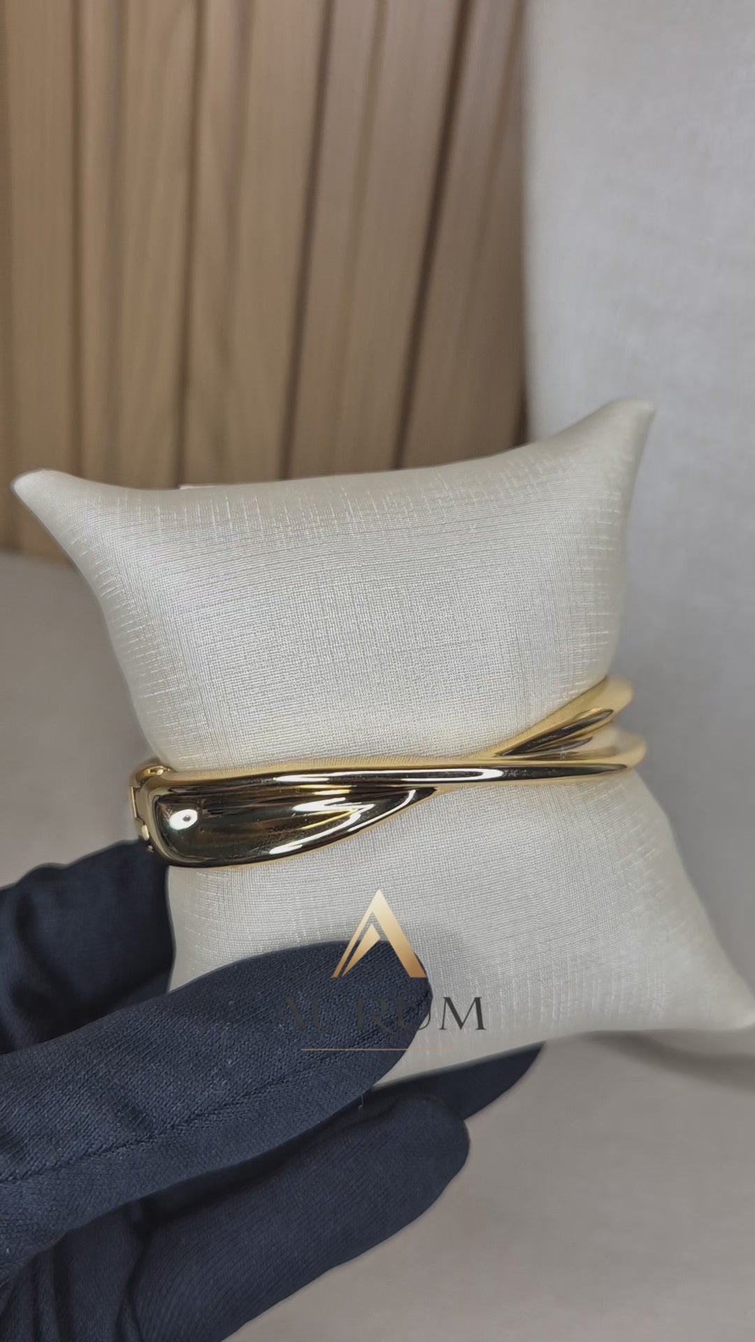 Design moderno com linhas fluidas e acabamento de alto brilho. Um bracelete sofisticado que envolve o pulso com elegância, trazendo presença e estilo em qualquer produção. Ideal para quem busca uma semijoia premium, versátil e atemporal.