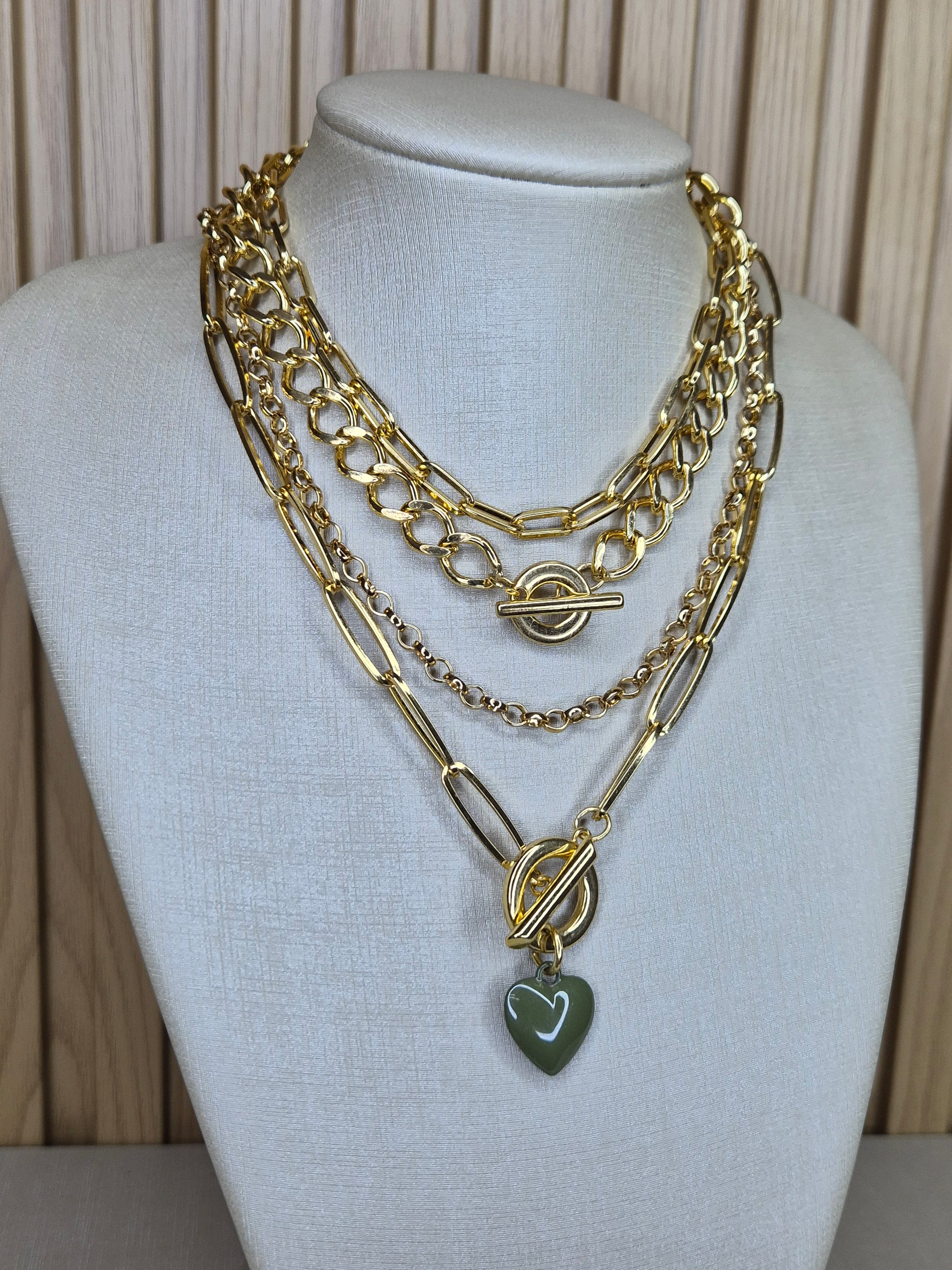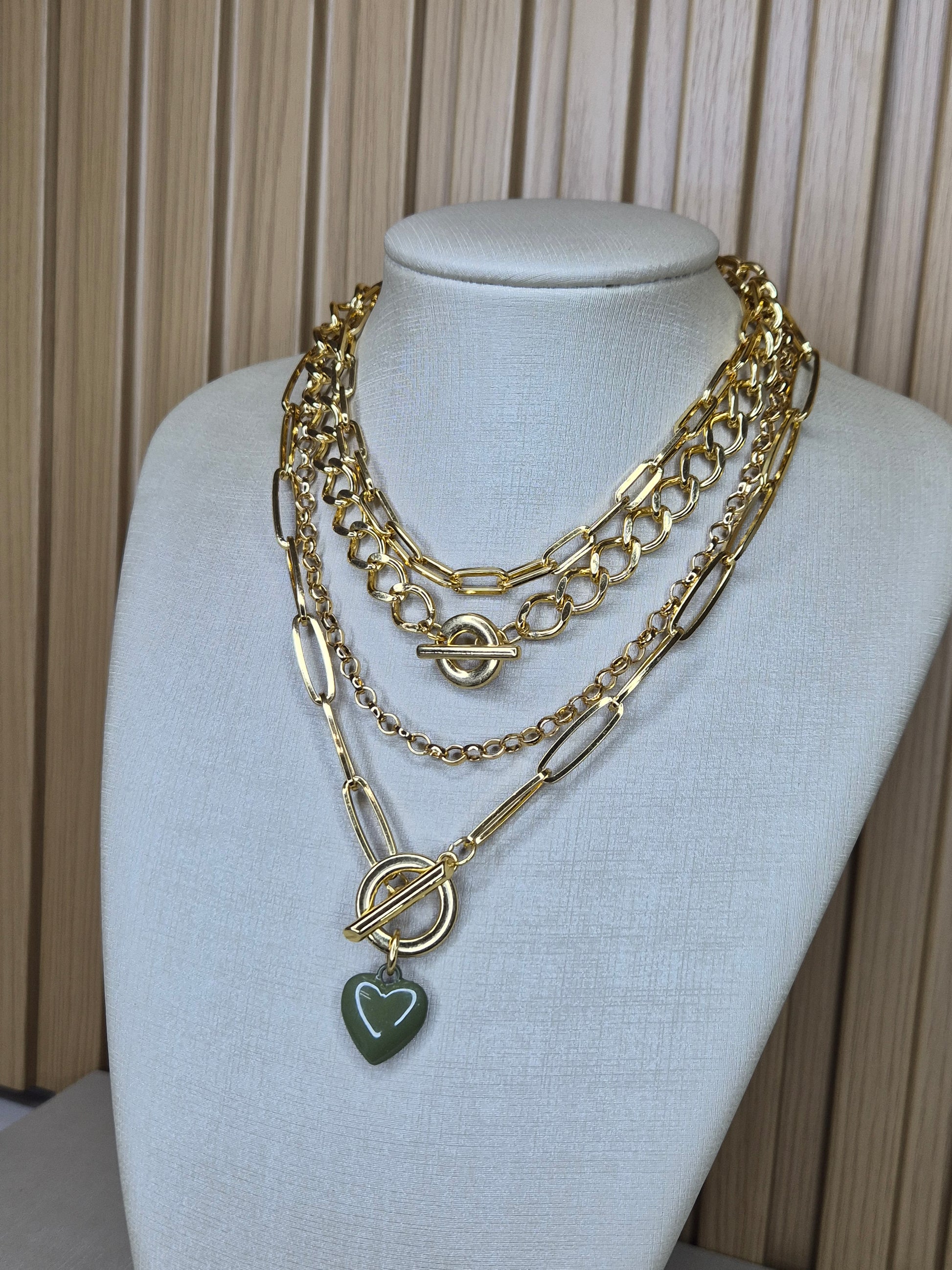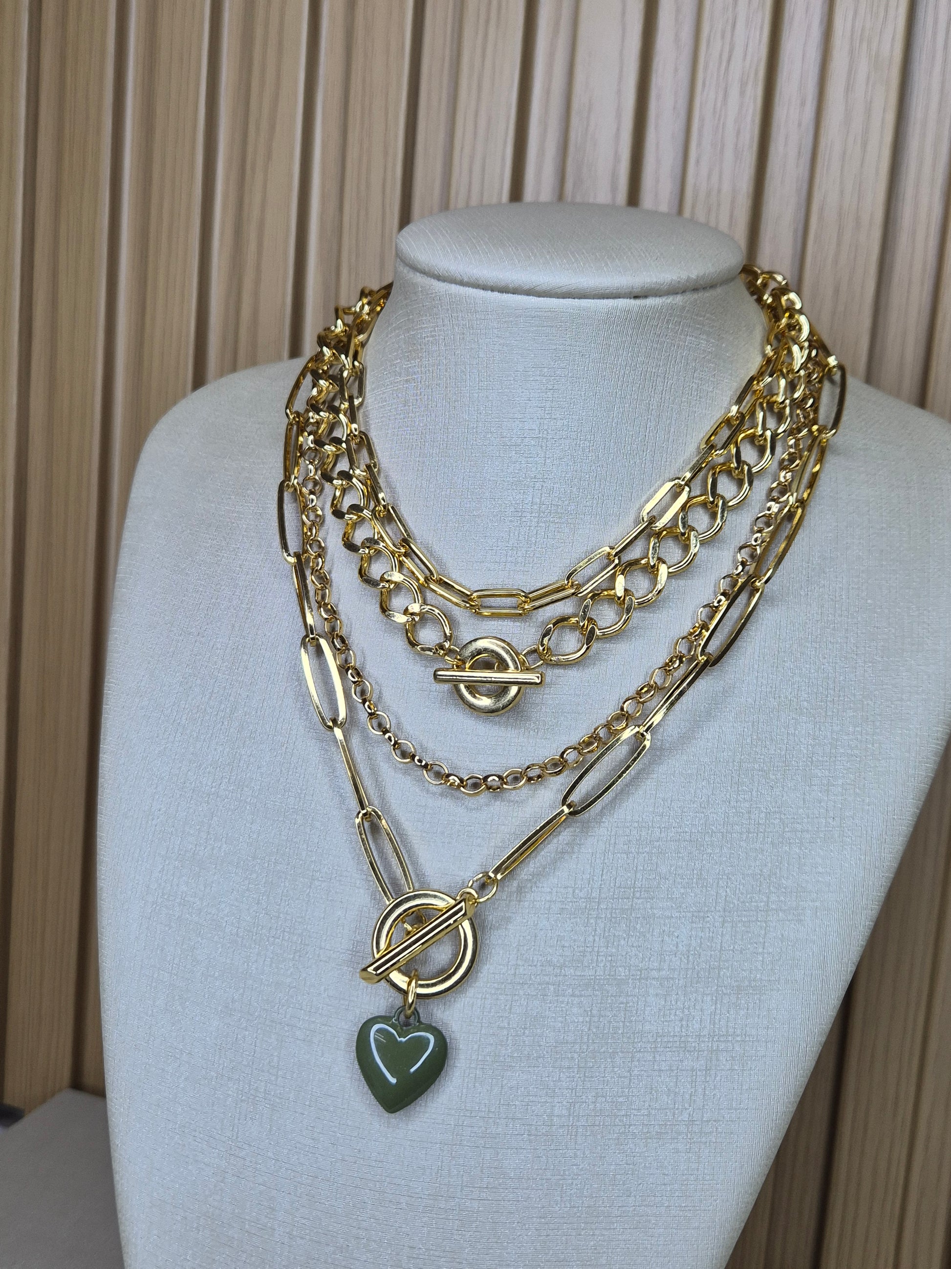 O Colar AURUM Élan Verde é uma semi joia autoral que traduz elegância contemporânea com personalidade marcante. Composto por um mix sofisticado de correntes douradas em diferentes elos, o design em camadas cria um visual moderno e poderoso, ideal para quem busca presença e estilo.